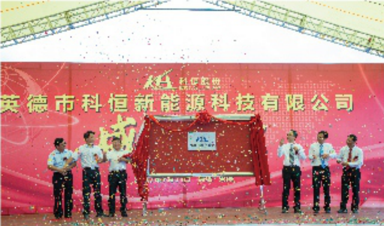 2017年7月,全資子公司英德市科恒新能源科技有限公司正式營業(yè),首棟K1廠房開始投產(chǎn)。